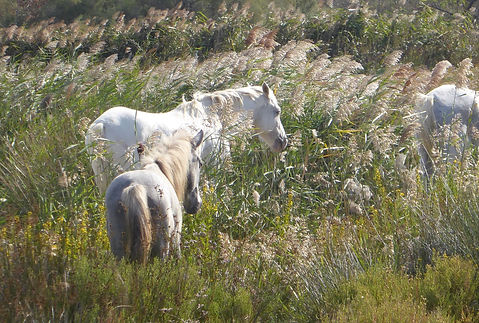 Carmarquedeltaet med de vilde heste og røde flamingoer